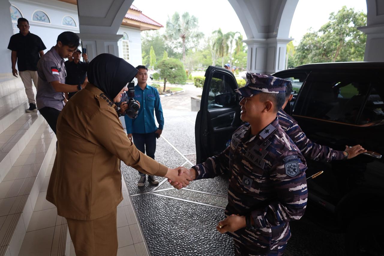 Hangat, ramah dan penuh penghormatan, Bupati Siak Dr. Afni Z, S.A.P., M.Si., sambut kedatangan Danlanal Dumai bersama rombongan. Kunjungan Danlanal Dumai merupakan momentum strategis untuk mempererat hubungan kelembagaan antara Pemerintah Kabupaten Siak dan Lanal Dumai. Berbagai isu strategis serta agenda kerjasama menjadi perbincangan hangat kedua pemimpin, mulai dari bidang potensi maritim, ancaman keamanan wilayah perairan Kabupaten Siak serta beberapa agenda pembangunan infrastruktur yang akan dilaksanakan di Kabupaten Siak.