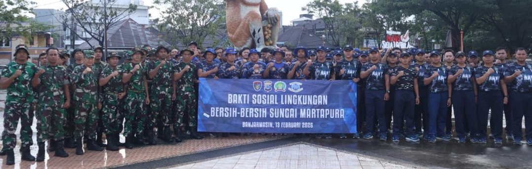 TNI AL, Banjarmasin- Dalam rangka peduli kebersihan di wilayah Perairan, Lanal Banjarmasin bersama Korem 101/Antasari dan Ditpolairud Polda Kalsel melaksanakan kegiatan Bakti Sosial Lingkungan Bersih-bersih Sungai Martapura, bertempat di Jalan Kapten Piere Tendean, Patung Bekantan, Kota Banjarmasin, Provinsi Kalimantan Selatan, Jumat (13/02/2026).
